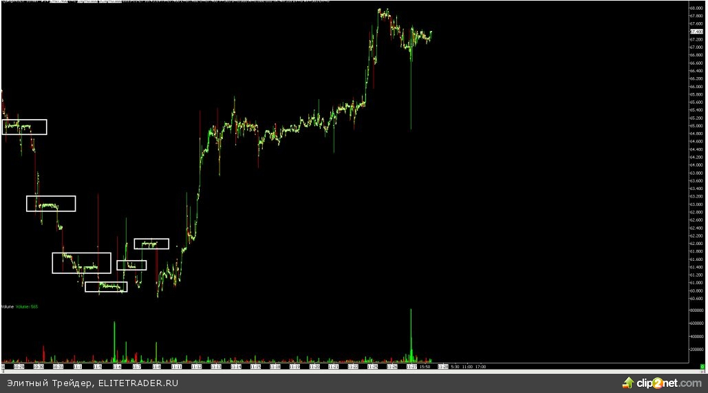 Потом была попытка сломать нисходящий моментум внутри дня. Однако кто-то крупный ее жестко пресек: