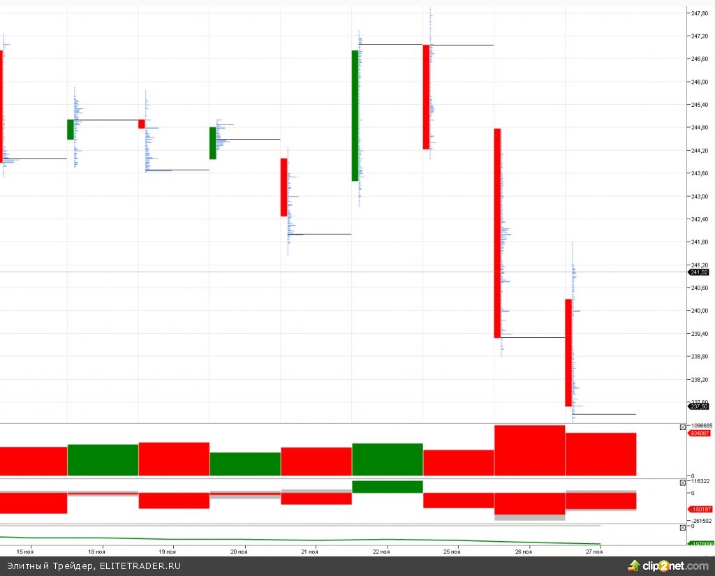 Вверху остался еще «неокученный» айсберг по 260 рублей. Цена имеет свойство возвращаться в эти точки. Ведь вы же не верите, что акция Роснефти завтра упадет до уровней Мечела?