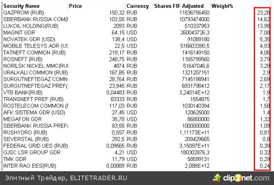 Старые веса были примерно такими (следует делать небольшую поправку на капитализацию, которая меняется каждый день):