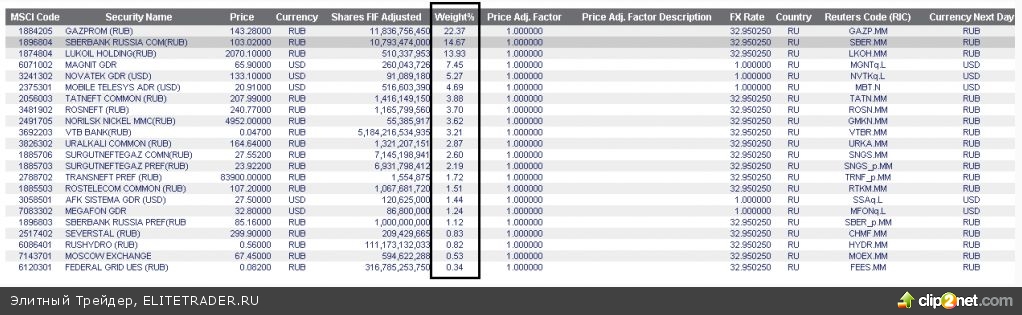 Сегодня на сайте Barra впервые появились новые веса по индексу MSCI Russia: