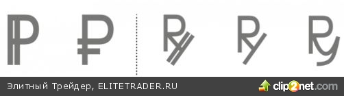 Было предложено два варианта символа рубля для кириллической версии, с горизонтальными или вертикальными линиями, напоминающими те, что используются в символе доллара, евро или японской иены.