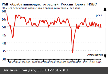 Российский рынок сегодня практически нейтрален и теряет символические 0,05% по индексу ММВБ. Участники предпочитают находиться в стороне от рисковых активов перед публикацией важных данных по деловой активности в производственном секторе США, а также выступлением Бена Бернанке. Между тем данные по деловой активности за ноябрь уже вышли в Китае, России и еврозоне и надо сказать в большинстве своем вышли они в позитивном ключе. Впрочем, исключение составила именно Россия где данный показатель неожиданно опустился ниже 50, достигнув уровня 49,4, что говорит о серьезном ухудшении в данном сегменте. Из компонентов индекса наиболее настораживает снижение числа рабочих мест пятый месяц подряд, а также падение закупочной активности и слабость экспортного спроса при умеренном росте инфляционного давления.