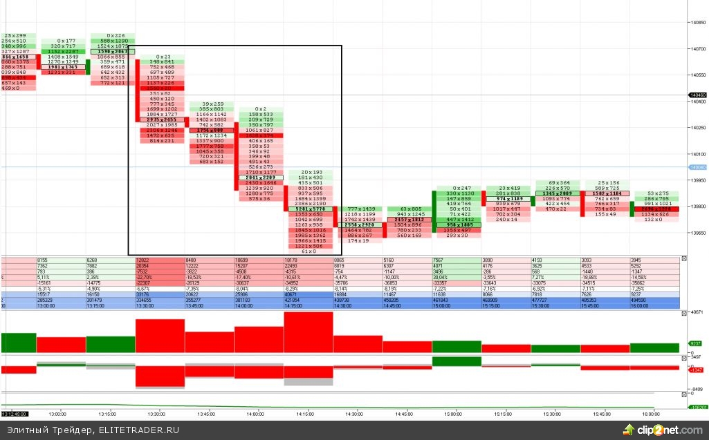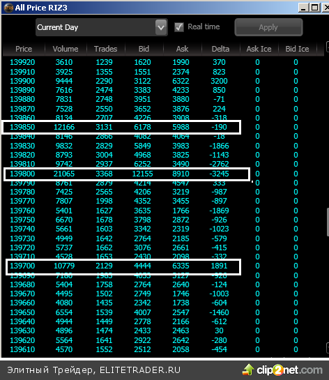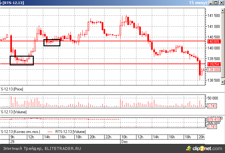 В прошлую пятницу была весьма сильная активность. Прошли покупки. Набили зону объемов в районе 139 300 — 139 600 пунктов. Кроме того, я выделил еще промежуточную зону 140 400 -140 600 пунктов. От этой зоны утром прошел импульс:
