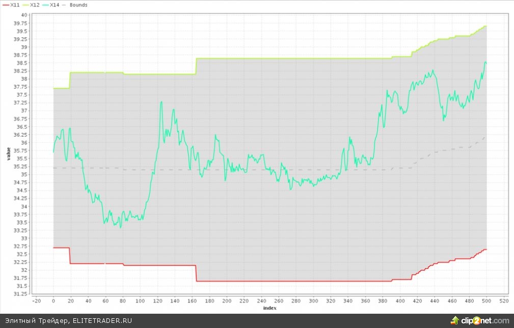 А вот так выглядела бивалютная корзина на клоузе прошлой пятницы, ЦБ успел сдвинуть коридор еще выше на 5 копеек: