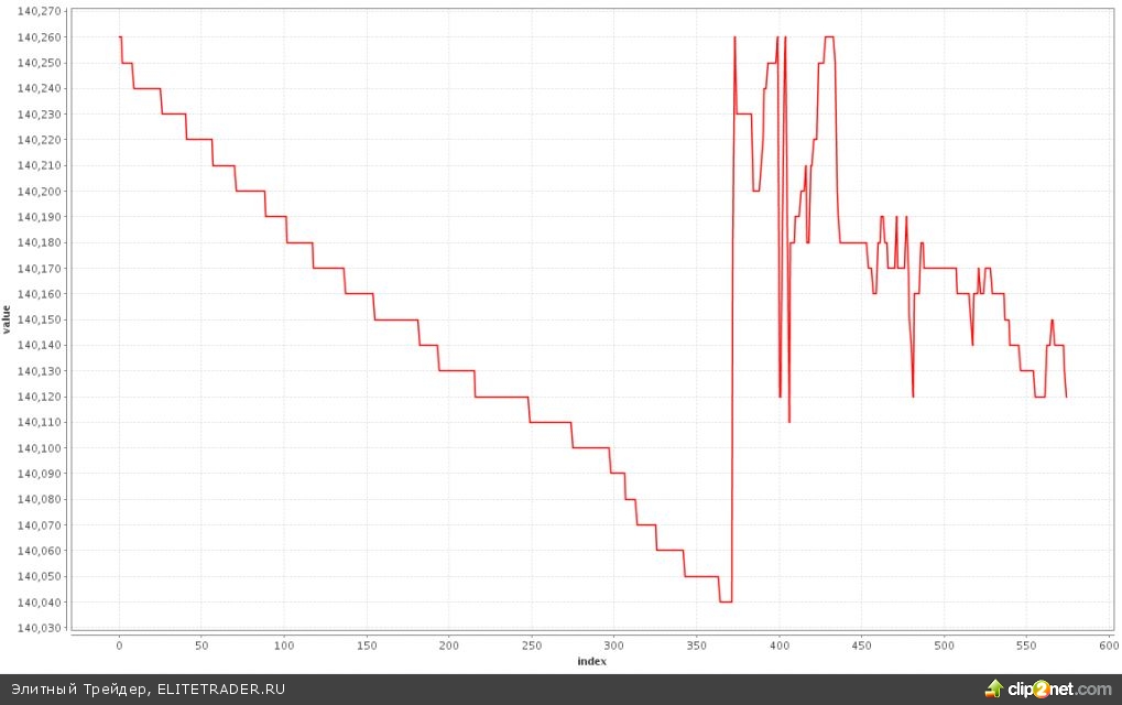 Восходящий импульс, который натолкнулся на препятствие в районе 141 500 пунктов. И здесь рынок резко изменился. Покупатель исчез и началось продавливание в течение всего дня.