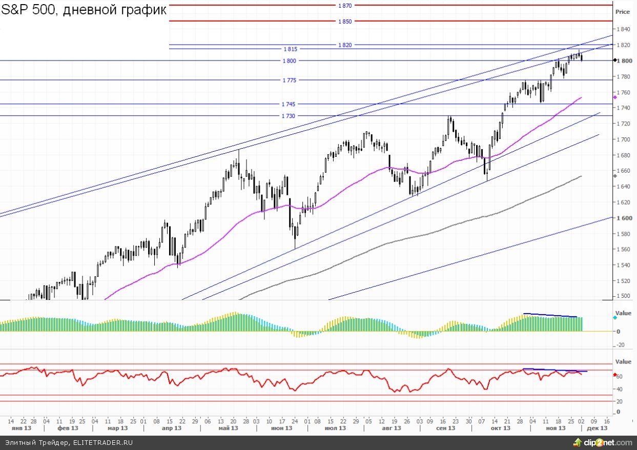 В данный момент фьючерсный контракт на SP500 торгуется без изменений около отметки 1800п.