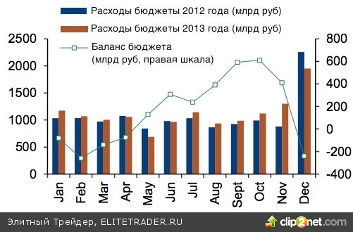 Не следует сбрасывать со счетов и фактор сезонности. На ноябрь-декабрь приходится пик роста государственных расходов, осуществляемых в связи с необходимостью достижения целевого показателя по дефициту бюджета в 521 млрд руб., в то время как в январе-октябре был зафиксирован профицит в 609 млрд руб.