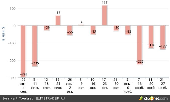 Ноябрь стал одним из худших месяцев в этом году для ETF-фондов, ориентированных на Россию. Общий отток капитала уступил лишь апрельскому, когда в центре внимания инвесторов находились проблемы Кипра, и июньскому, когда над развивающими рынками нависла угроза скорого сворачивания QE.