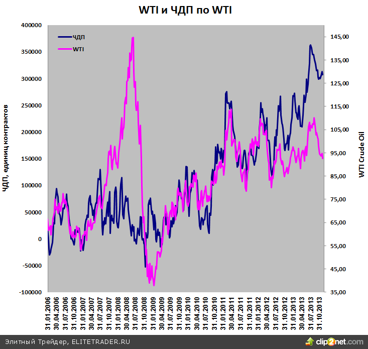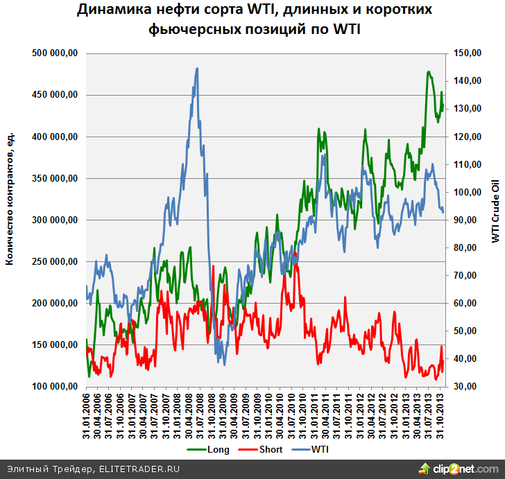 Чистые длинные позиции на Нью-Йоркской товарно-сырьевой бирже по итогам недели, закончившейся 26 ноября, сократились на 13670 контрактов или 1,8%, максимальное снижение с 9 сентября. Похоже, что на фоне постоянно растущих коммерческих запасов и после некоторого роста котировок с относительно низких уровней, участники рынка вновь закладываются на возможность еще одного импульса вниз. Американский эталонный сорт по-прежнему остается уязвимым и гораздо более привлекателен для поиска коротких позиций, чем длинных.