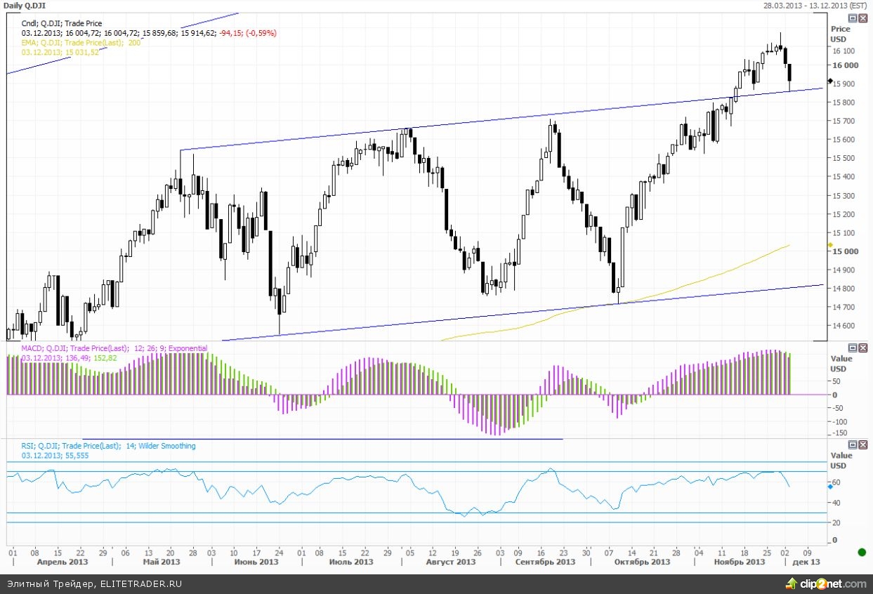 Впрочем, нельзя сказать, что снижение шло широким фронтом. Только пять секторов из десяти закрылись снижением во главе с потребительским, сектором материалов и финансовым. Касательно последнего отметим, вчерашние сообщения о том, что 4 из 5 регуляторов финансового сектора, а именно Fed, CFTC, FDIC, OCC планируют провести голосование 10 декабря по небезызвестному правилу Волкера, которое запрещает банкам проводить торговые операции на собственные средства. Многие банки давно готовятся к введению данной нормы, которое затянулось с 2010 года. Но итоговая версия документа может оказаться весьма жесткой.