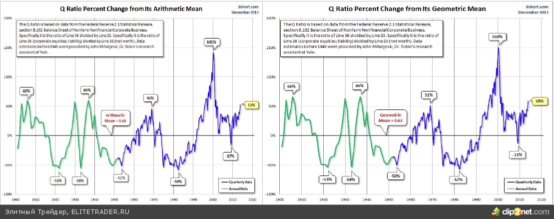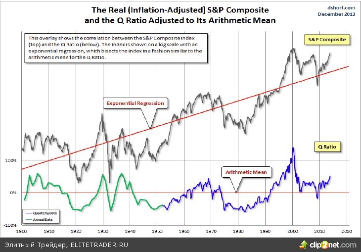 Индекс S&P с учетом инфляции и коэффициент Тобина с учетом арифметического среднего значения