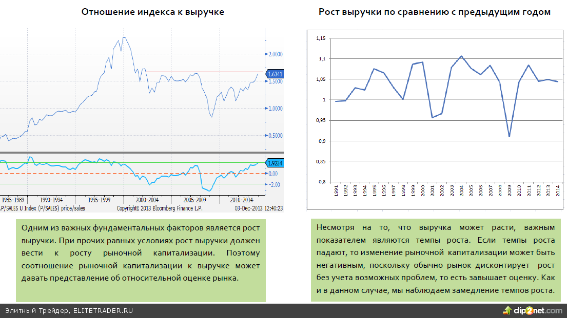 Рыночная капитализация 500 сравнялась по значению с предкризисными уровнями 2007 года. Если сравнить со значением 2000 года на пике рынка, который прозвали "", то настоящий уровень на 20% ниже. Тем не менее, настоящий уровень достаточно высок в историческом контексте.