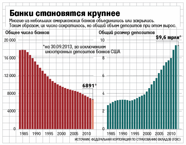 Число американских банков сократилось до рекордного минимума со времен Великой депрессии.