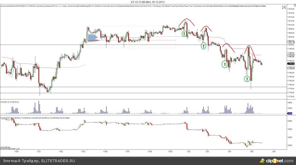 Если предположить, что «правое плечо» разворотных моделей — это способ заманить толпу в сторону доминирующего тренда, для того, что бы проехаться потом на их стопах в противоположном направлении, становится понятно почему рынку не дают так просто свалиться, инициируя покупки с началом сессии, частично удерживая биды, для того, что бы шортить лимитами против «мяса», которое обычно лезет в рынок с открытия следуя начальному испульсу.