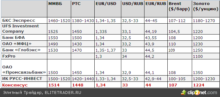 КОНСЕНСУС-ПРОГНОЗ на конец 2013 года: