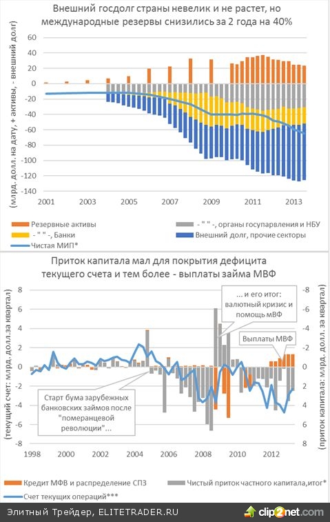 1. Если судить по тому, что пишут - финансовое положение Украины безысходно, и метания правительства Януковича между «свободой, равенством и братством» по одну сторону границы, и «православием, самодержавием, народностью» с другой обусловлены именно необходимостью разжиться поскорей деньгами. После отправки на помойку соглашения о зоне свободной торговли (ЗСТ) с Евросоюзом, восприятие инвесторами рисков двойного или тройного кризиса (бегство от гривны + bank run + дефолт по госдолгу) в Украине еще до выборов 2015, действительно, заметно упрочилось.