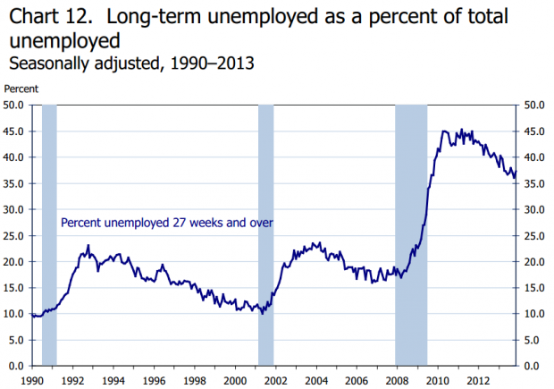 Долгосрочная занятость была особенно сильным бичом американского рынка труда, более чем в два раза не дотягивая до дорецессионного уровня.