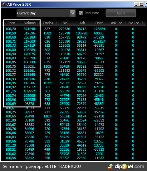 На рисунке видно, что самая сильная активность крупных тиковых объемов сегодня была в районе 140 600, 141 100 и 140 800 пунктов. Размер кластера в дальнейшем буду оптимизировать под каждый инструмент/акцию.