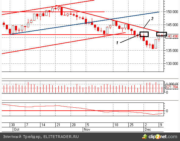 2) линия даунтренда (октябрь-ноябрь).