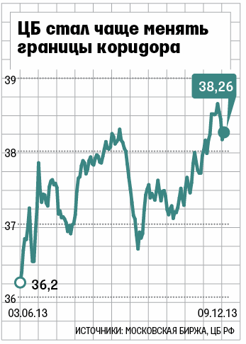 Это еще один шаг ЦБ на пути к плавающему валютному курсу, на который регулятор планирует перейти к 2015 г., считают экономисты. Если интенсивность интервенций ЦБ останется прежней, то границы коридора будут сдвигаться чаще. По оценке главного экономиста HSBC по России и Украине Александра Морозова, в месяц — на 1-2 раза чаще, чем сейчас. В последнее время ЦБ и так активно сдвигает границы коридора: в ноябре — 7 раз (курс рубля сильно снижался, 28 ноября евро стоил 45,07 руб. — максимальное значение с лета 2009 г.), в декабре — уже дважды. Морозов ожидает, что ЦБ к концу 2014 г. завершит переход к плавающему курсу, это произойдет на пару месяцев раньше 1 января 2015 г.