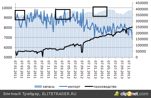 Нельзя сказать, что среднесрочные перспективы нефти выглядят оптимистично. Как правило, с начала января запасы черного золота в США растут, что воспринимается как сокращение спроса и оказывает давление на цены.