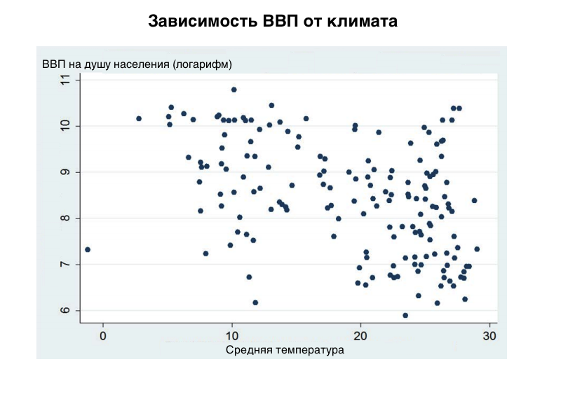 В течение следующих 250 лет экономисты постоянно находили подтверждения этой теории. Одно из последних исследований, проведенное в 2000 году, показало, что каждый лишний градус отнимает у страны несколько процентов ВВП.