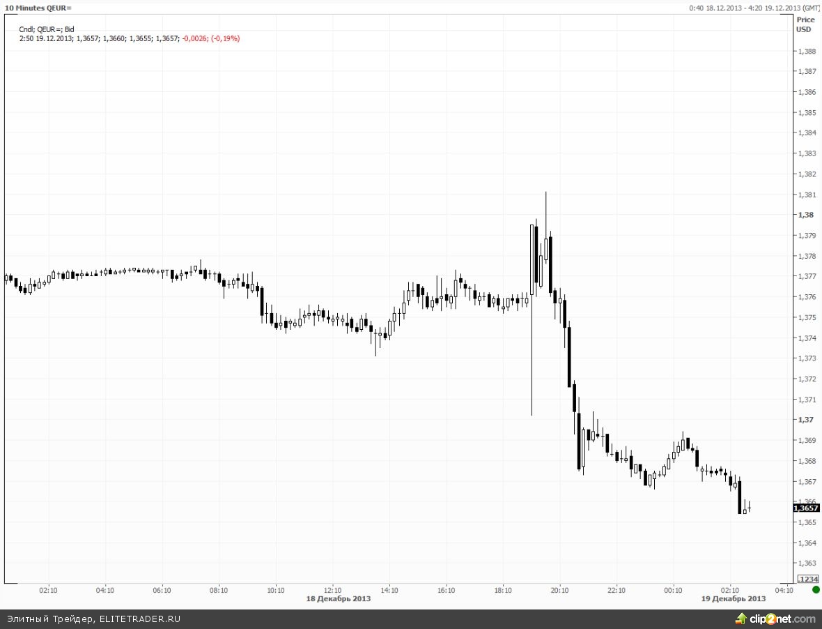 В последующей пресс-конференции глава ФРС Бен Бернанке, уходящий в отставку 31 января, дал несколько более расширенное видение этапов сокращений QE. «Если мы добьемся прогресса с точки зрения инфляции и продолжения роста рабочих мест.... Я предполагаю, что мы будем продолжать сокращения, вероятно, на каждом заседании», - заявил он. Но в то же время как он отметил, ухудшение данных может удержать ФРС от сокращений, при этом сокращения могут проходить до конца 2014 года, но конечно программа не будет свернута к середине года.