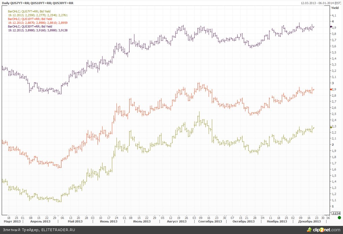 При этом, новогоднего ралли, судя по всему, уже не последует. «Ряд позитивных событий имеет место быть в последнее время. Экономика США показывает неплохие темпы, и осторожные прогнозы на 2014 сводятся, в основном, к улучшению ситуации, - пишет в отчете Хенрик Друсбьерг, стратег Nordea Bank. – Однако для возвращения в «нормальную» систему ценностей, рынку еще нужно определённое время. Отголоски негативной реакции на хорошие новости из-за возможности QE Exit еще будут мучать рынок, а достигнутые максимумы давят на индексы в преддверии праздничного тонкого рынка».