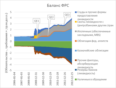 Последний этап, QE3 выглядел особенно смелым и спорным, поскольку он был заявлен как «бесконечный», до явных признаков оздоровления в экономике (на рынке труда) и объявлен был, как средство противостояния шоку, ожидавшемуся со стороны ужесточения бюджетной политики.
