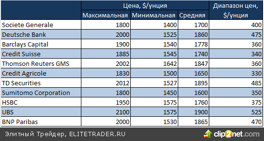 Невооруженным взглядом видно, что оценки в итоге оказались завышенными, однако, согласитесь, в начале года, когда драгоценный металл котировался по $1680 за унцию, сложно было представить себе иное.