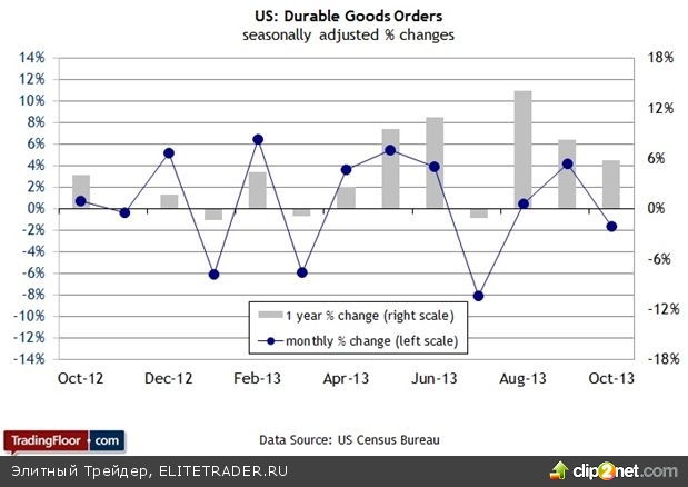 Заказы на товары длительного пользования в США (13:30 GMT): Показатели экономической активности улучшаются. Потребительские расходы в ноябре выросли седьмой месяц подряд. Также улучшились настроения среди потребителей, о чем свидетельствует окончательная оценка индекса потребительских настроений от Thomson Reuters и Мичиганского университета, которая в декабре достигла максимального за пять месяцев значения. Между тем промышленное производство в прошлом месяце отметилось самыми значительными темпами роста за период одного года, в то время как рост ВВП в третьем квартале по итогам пересмотра составил 4,1%, что стало самым высоким значением с четвертого квартала 2011 года.