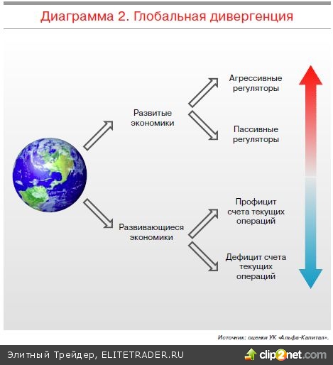 В период кризиса 2008 года и непосредственно после первой фазы восстановления, закончившейся в конце 2009 года, страны оказались примерно в одинаковом положении. Произошла синхронизация бизнесциклов. Начиная же с 2010 года пути экономик стали расходиться. Развивающиеся страны изза накопленных внутренних проблем стали проигрывать развитым, особенно США. При этом группы развитых и развивающихся стран также стали неоднородными: среди развитых стран преимущество получили те, где оказались более решительные и агрессивные регуляторы, а среди развивающихся лучше смотрелись те, которым удалось сохранить положительное сальдо по счету текущих операций1.