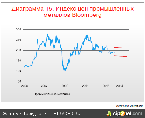 Промышленные металлы Промышленные металлы в 2013 году в общей массе продемонстрировали отрицательную динамику. Общей причиной стали снижение ожиданий роста экономики Китая, который является двигателем спроса на металлы, и улучшение динамики добычи практически всех металлов. Лидерами падения стали никель и алюминий – два металла, на рынках которых наблюдается кризис перепроизводства. На следующий год не ожидается продолжения существенного снижения цен на металлы с текущих уровней. Однако пока и предпосылок для ралли на рынках металлов тоже пока не наблюдается.
