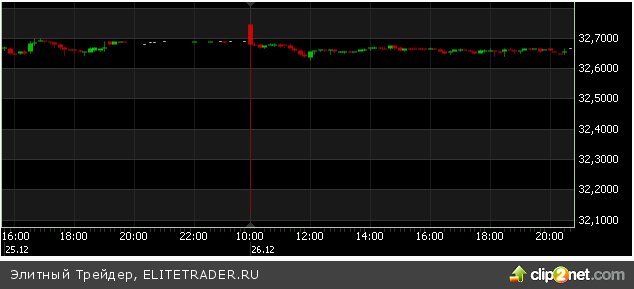 Эдакий мини-крах. 32,6, 32,5, 32,3, 32,2, 32,12 руб. Эти цены разделяли всего несколько тиков. 10 млн. долларов по 32,2 руб. кто-то успел все же купить. Такие аномалии на тиках достойны отдельных исследований. Почему они возникают? Что они значат с позиции обеспечения ликвидности? Опять виноваты ХФТ-роботы? :) Все же речь о национальном достоянии — национальной валюте.
