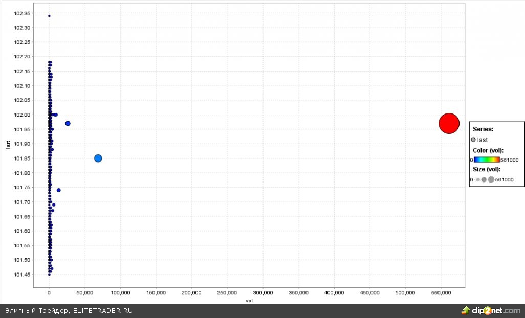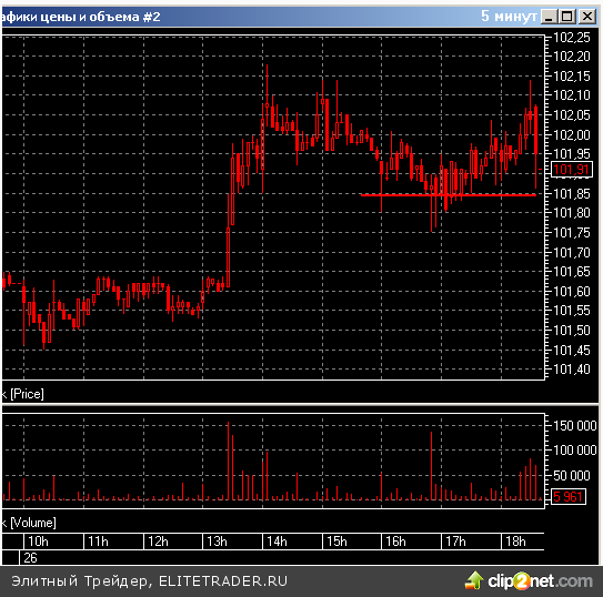 Берем эту точку на карандаш. Но цена ниже не пошла, ниже 101,85 руб. одни «хвосты» внутри дня: