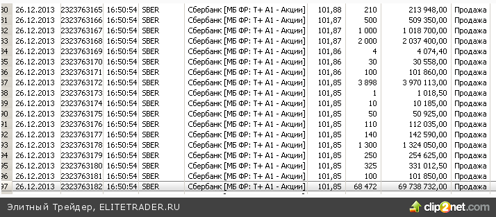 Если отфильтровать этот тик, то можно увидеть, что в Сбербанке была самая крупная сделка в районе 16-50-54 акции на сумму порядка 80 млн. руб.: