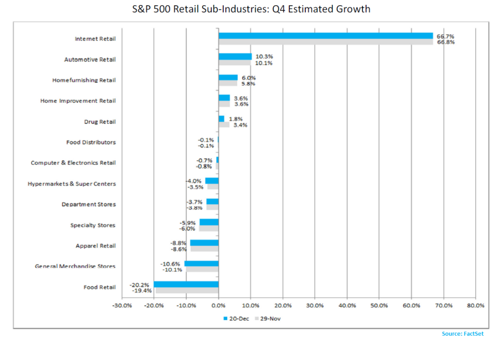 "Розничные продавцы обычно сообщают о самых крупных за год прибылях в четвертом квартале в связи с праздничным сезоном. С учетом того, что приближается конец сезона покупок, какие компании из состава S&P 500 покажут самые высокие и низкие темпы роста прибыли?