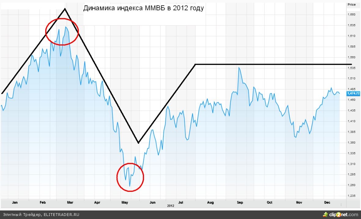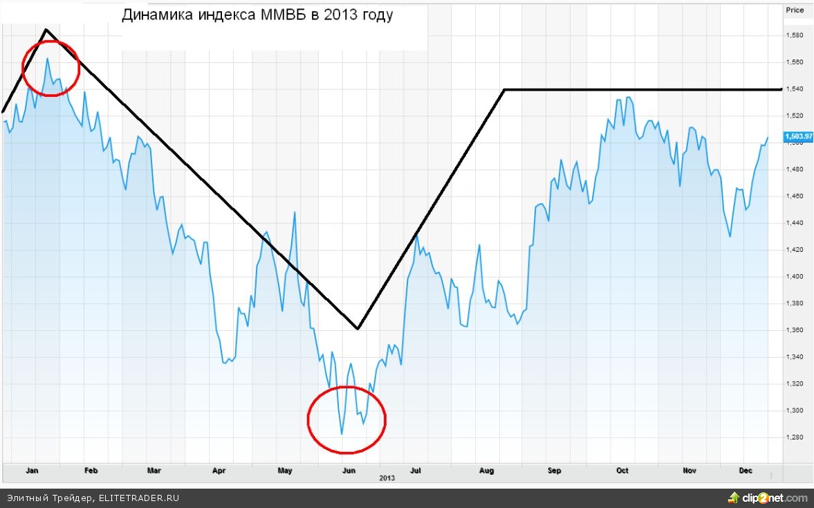 Более того, если взглянуть на графики индекса ММВБ в 2012 и 2013 годах, то каждый обнаружит, что в них нет практически никаких существенных различий. В этом году, как и в 2012, в самом начале мы наблюдали рост котировок и установление максимума года. Затем по рынку прокатилась масштабная волна распродаж с установкой уже минимумов года в мае-июне. Ну а далее мы стали свидетелями непродолжительного восстановления, которое трансформировалось в банальный боковик.