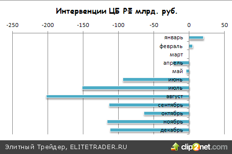 Впрочем, в дальнейшем и нефтяные котировки, и интервенции Банка России уже, скорее, поддерживали рубль, чем пытались оказать на него какое-либо давление. В частности, нефть во втором полугодии выросла более чем на 10% на фоне напряженности в Египте и Сирии, а российский регулятор по итогам года продал иностранной валюты более чем на 857 млрд рублей.