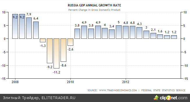 Тем временем российская экономика весь год чувствовала себя крайне слабо, что еще больше давило на национальную валюту. ВВП страны по итогам года вряд ли превысит 1,6%, при первоначальных прогнозах от 3% и выше