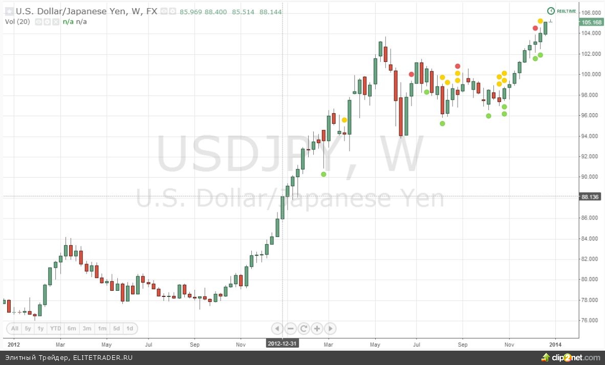 На этом фоне сделкой года с основными валютами стала покупка доллара США против японской иены. Разговоры о сворачивании покупок активов ФРС показали курсу доллара к иене путь к пятилетнему максимуму. В атмосфере бюджетного кризиса в США они привели ещё к росту евро/доллара с 1,275 до 1,38.