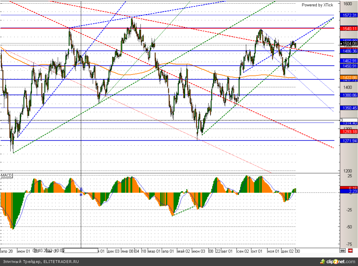 Российский рынок сегодня незначительно вырос. При этом ММВБ закончил предпраздничную торговую сессию выше 1500, где проходит среднесрочная трендовая линия. Данный момент дает надежды на продолжение роста в ближайшем будущем.