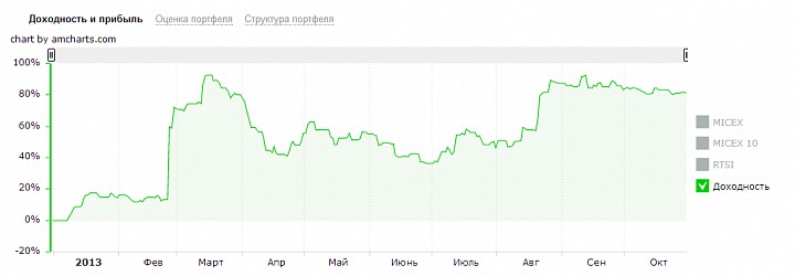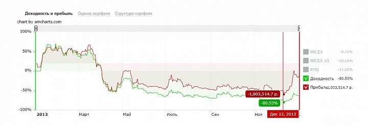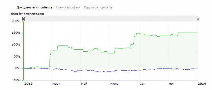 Формула-1 это уникальная стратегия. В моменты была доходность +1500% за четыре месяца. Правда это после просадки на -90% и на небольших суммах. Впрочем сама суть этой стратегии менялась и в 2014 это будет портфель перспективных растущих компаний второго эшелона.