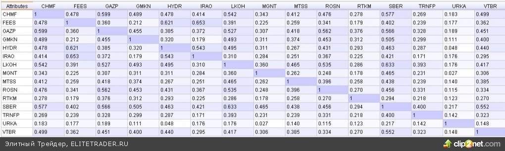 Далее я приведу корреляционные матрицу для фьючерсов, которые торгуются на ФОРТС: