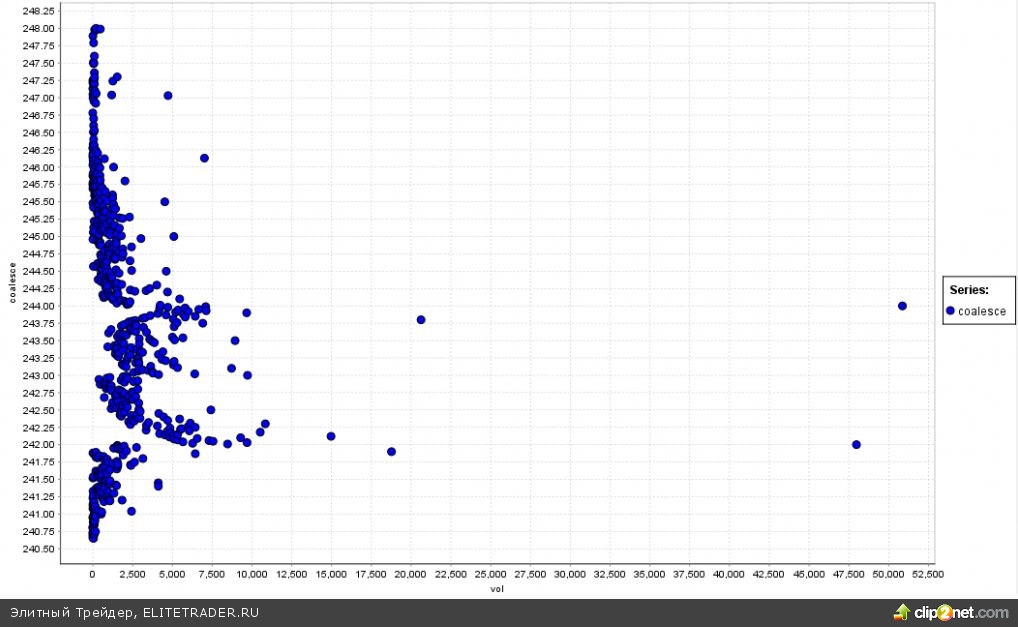 С января максимальные объемы в акции набраны по 242 рубля — 45 тыс. лотов и по 244 руб. — около 50 тыс. лотов: