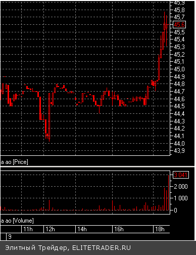 На удивление, к НЛМК был интерес и на рынке акций. Сегодня пару раз ее дергали вверх. Причем это сопровождалось ростом объема.