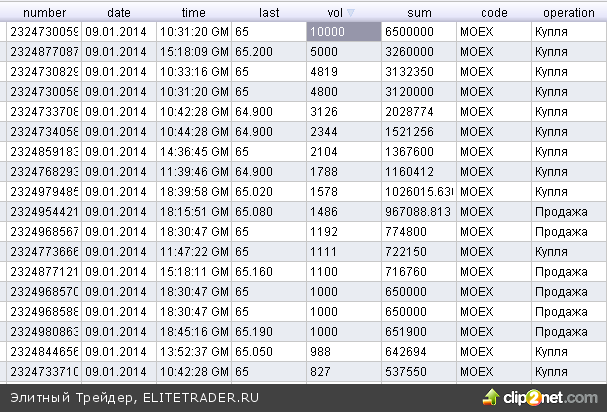 В таблице сегодняшних сделок видно, что какими крупными лотами работали на уровне: