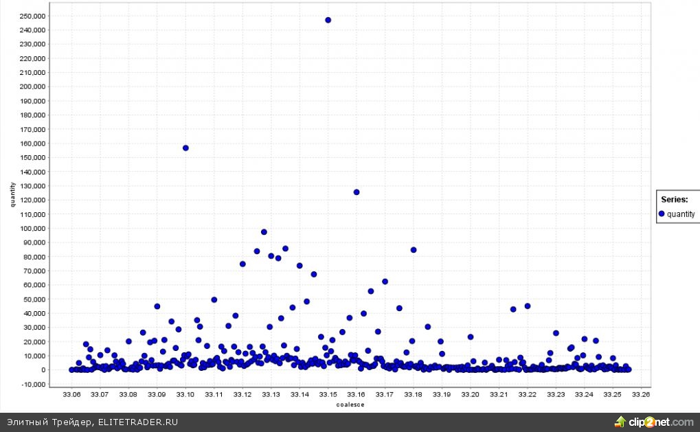 33,1 руб. — максимальные объемы вчерашнего дня. В районе 33,05-33,1 руб. также скопление объема. Сегодня от этих объемов внутри дня был импульсный спрос.
