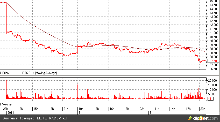 На графике ниже вы можете увидеть, что цена фьючерса на индекс РТС существенно долго выше 139 000 пунктов пока зацепиться не смогла.