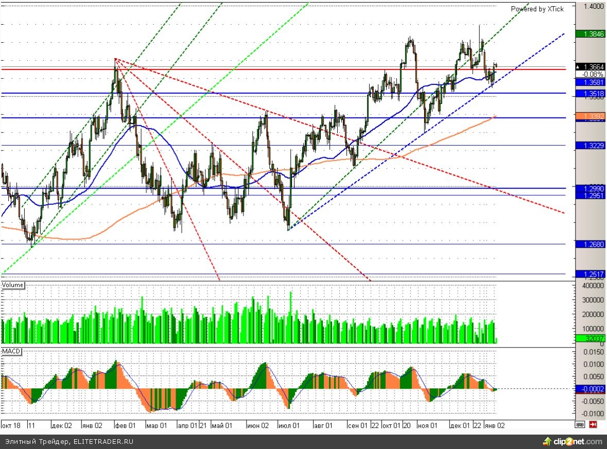Евро снижается к доллару на 0,08%. Европейская валюта продолжает консолидироваться в непосредственной близости к уровню 1,36, где проходит восходящая трендовая линия. Влияние на данную валютную пару сейчас оказывают такие противоречивые факторы, как снижение ожиданий по росту экономики региона в ближайшем будущем вкупе с возможно более мягкими действиями ФРС по сворачиванию стимулирования в США. Данный баланс может нарушиться лишь сильными драйверами, которых сегодня, к сожалению, не предвидится.